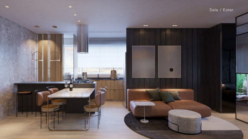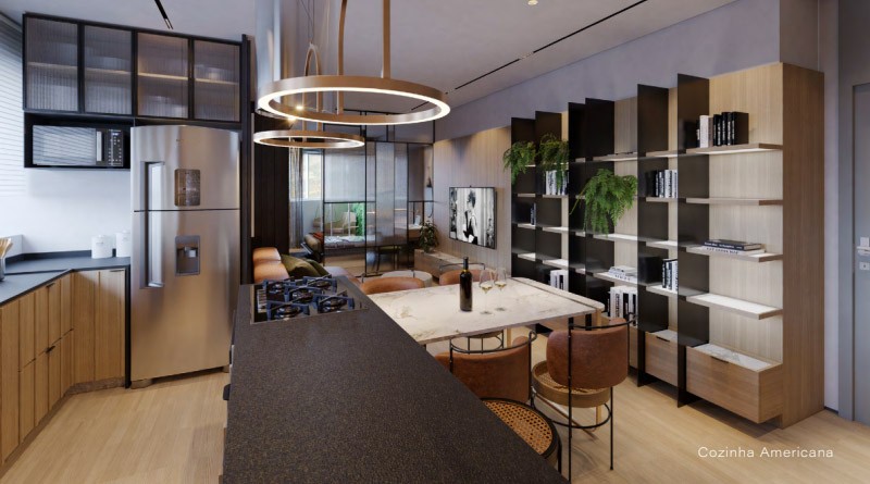 Apartamento loft de 50 m2, sala, cozinha conceito aberto , área de serviço. 01 suite com varanda. 01 vaga de garagem.