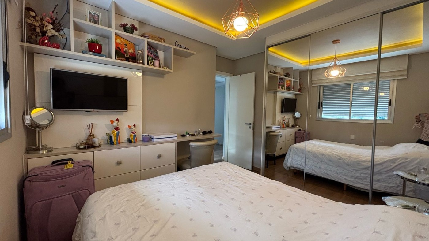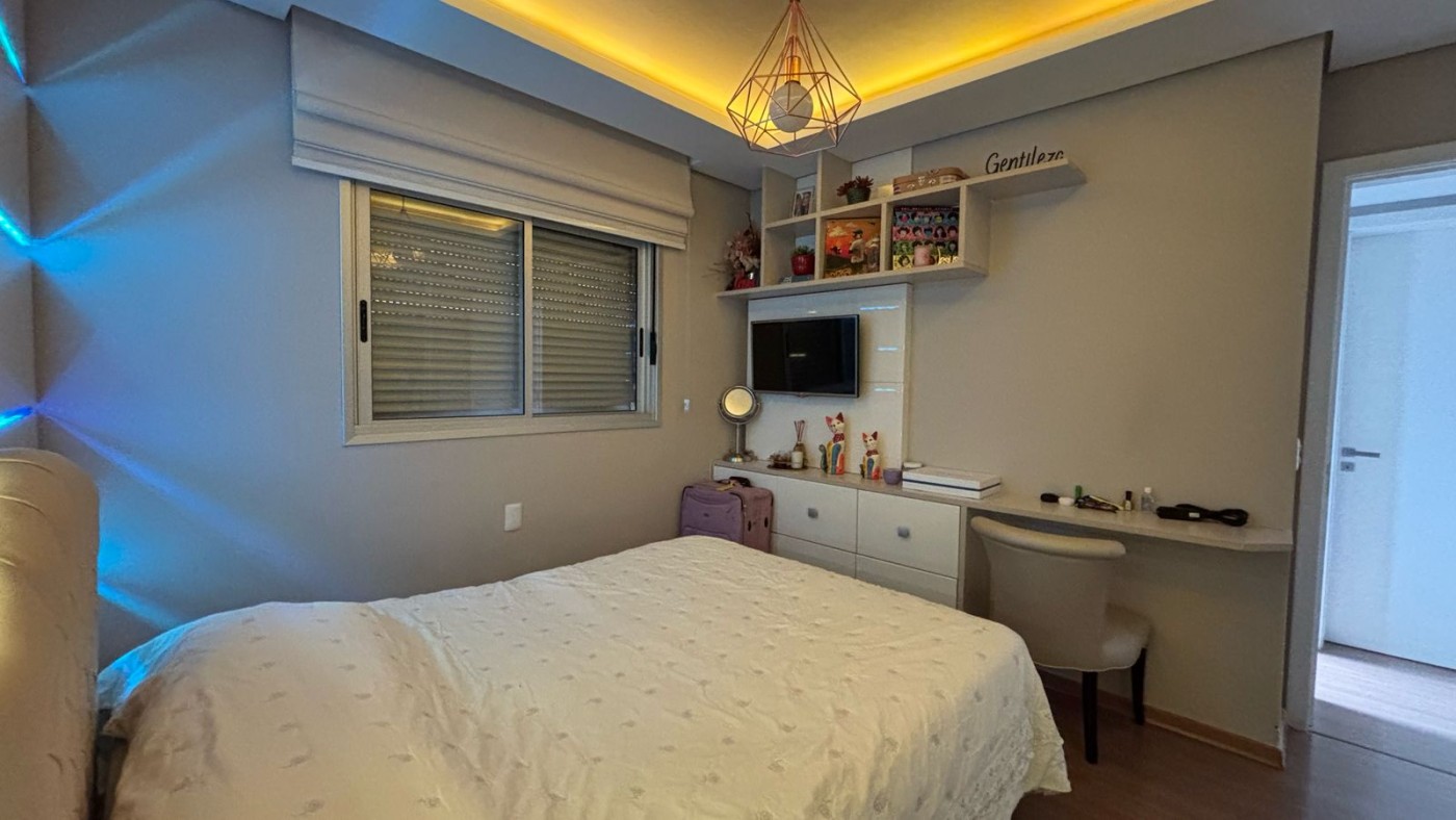 Este apartamento de 125 m² privativos situa-se em andar alto, oferecendo vista panorâmica e luminosidade inigualáveis. Com três dormitórios – sendo um suíte com closet –, dois banheiros, lavabo e área de serviço independente, cada detalhe foi planejado para o conforto absoluto. A cozinha, equipada com armários sob medida, varanda gourmet, criando um cenário ideal para receber amigos em grande estilo.