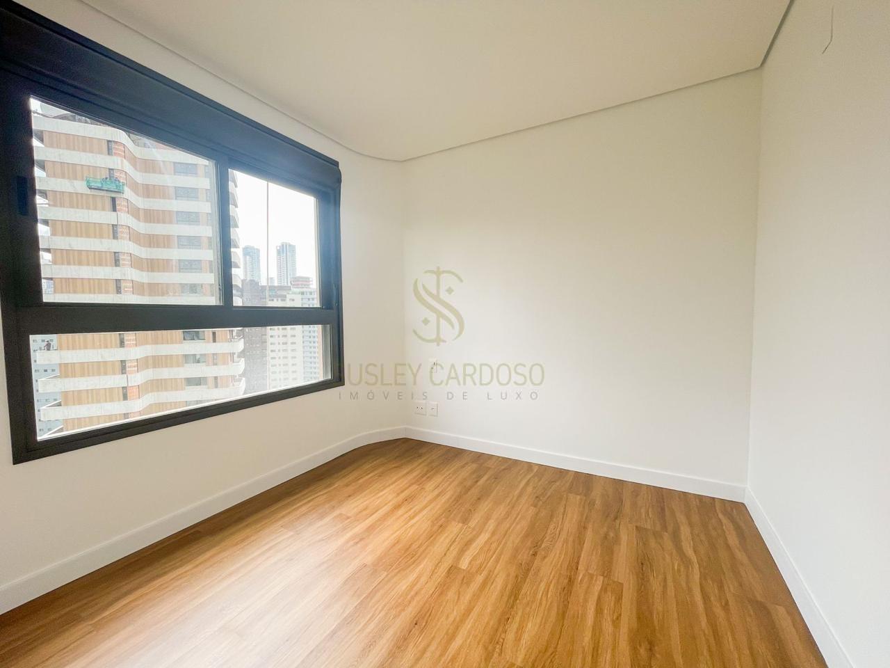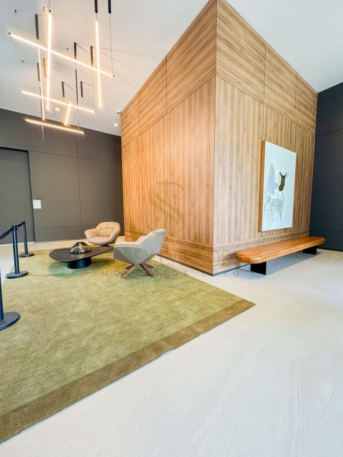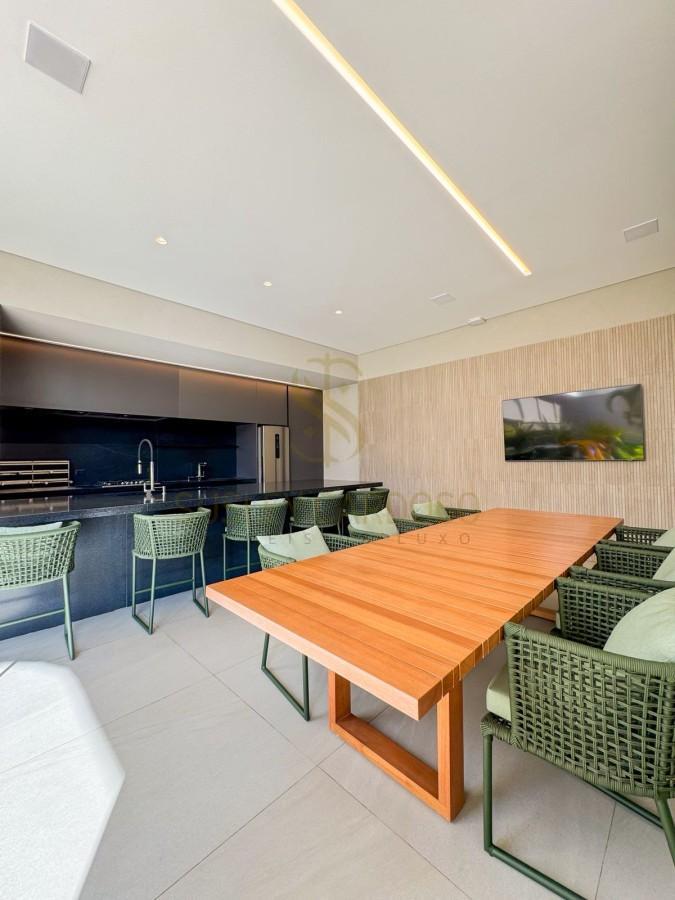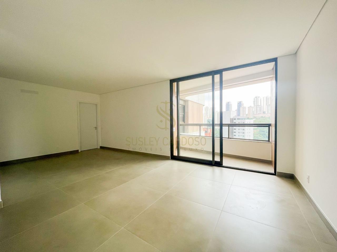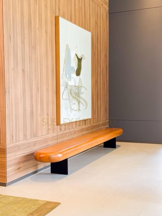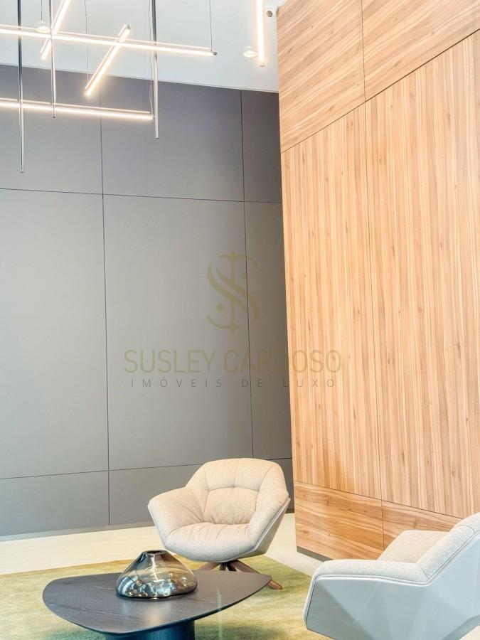 Este apartamento de 142m², possui uma sala ampla se conecta à varanda, criando um ambiente elegante para receber.
