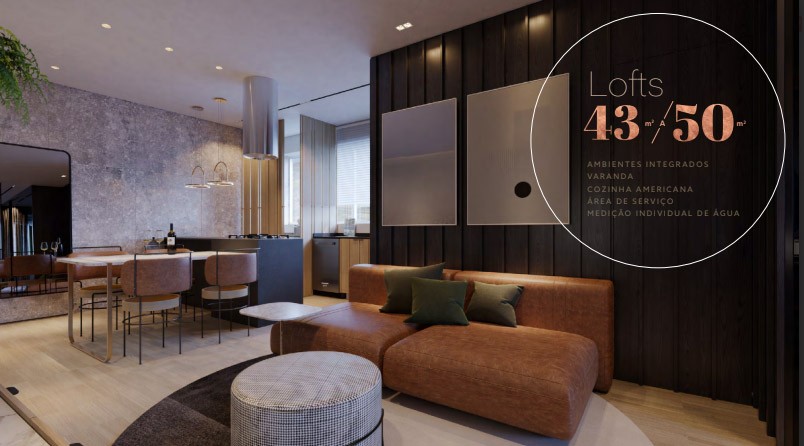 Apartamento loft de 50 m2, sala, cozinha conceito aberto , área de serviço. 01 suite com varanda. 01 vaga de garagem.