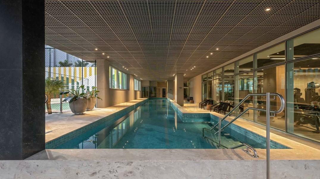 Infraestrutura e benefícios, conta com portaria 24 horas, controle de acesso e monitoramento por câmeras, garantindo segurança e tranquilidade. O condomínio possui áreas comuns elegantes, hall social refinado, elevadores modernos e ambientes planejados para oferecer conforto e funcionalidade no dia a dia.