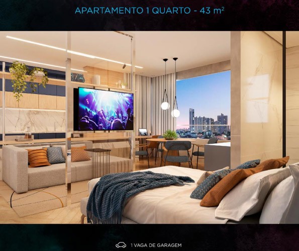 Apartamento de 1 quarto com 43m² e 1 vaga no Vale do Sereno.